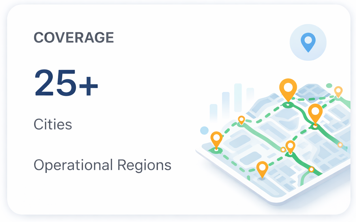 Scalable operations with local teams covering highways, cities, towns, and rural regions.
